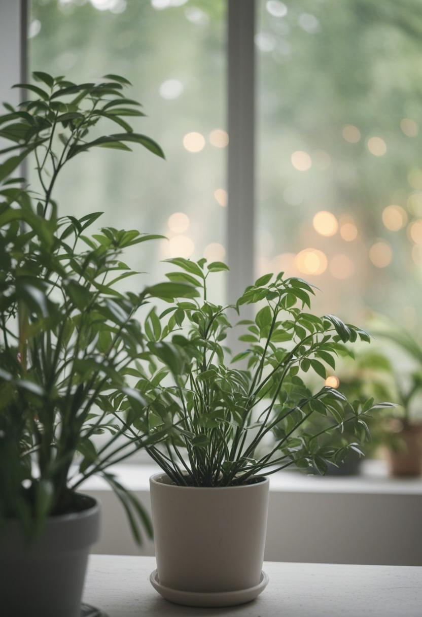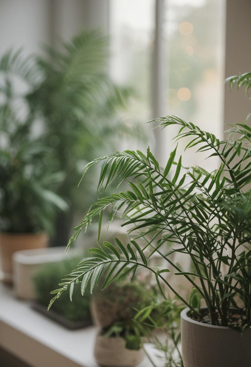 5. A serene scene featuring lush, aesthetic plants with soft green tones, creating a calming and natural atmosphere. The composition highlights foliage and plant textures, evoking a peaceful, nature-inspired mood.