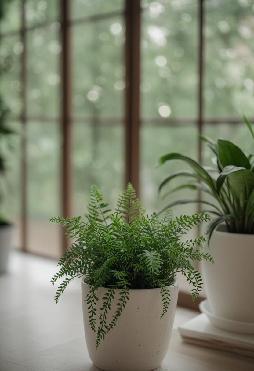 4. A serene image featuring lush, green plants arranged in a calming, natural background. Soft textures and gentle lighting create a peaceful, aesthetic atmosphere perfect for relaxation and mindfulness.