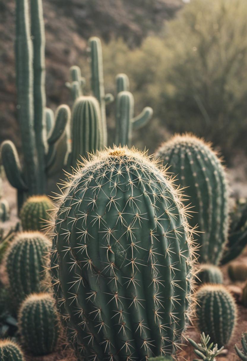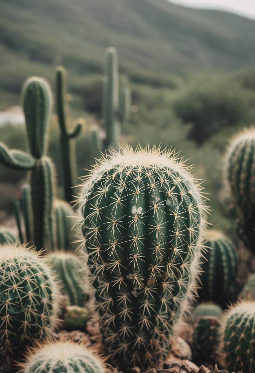 8. A collection of cactus aesthetic plants featuring spiky succulents, earthy tones, and minimalist designs. Perfect for adding a rugged, natural touch to any space with a touch of desert charm.