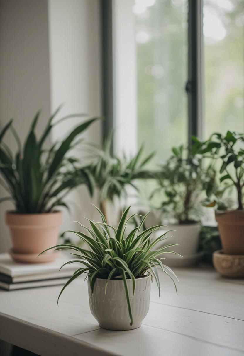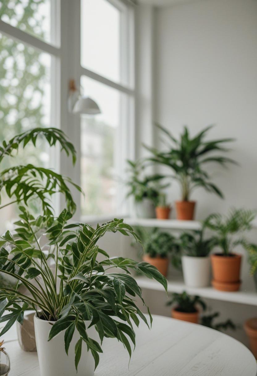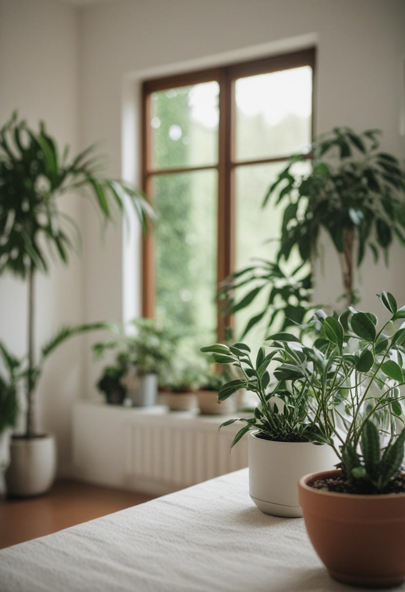 3. A serene home decor featuring lush green plants in elegant pots, adding a touch of nature and calm to any room. Perfect for creating a peaceful, plant-filled living space.