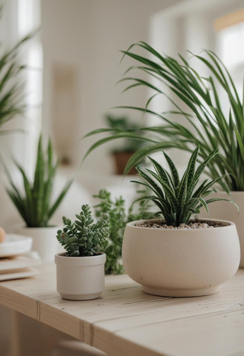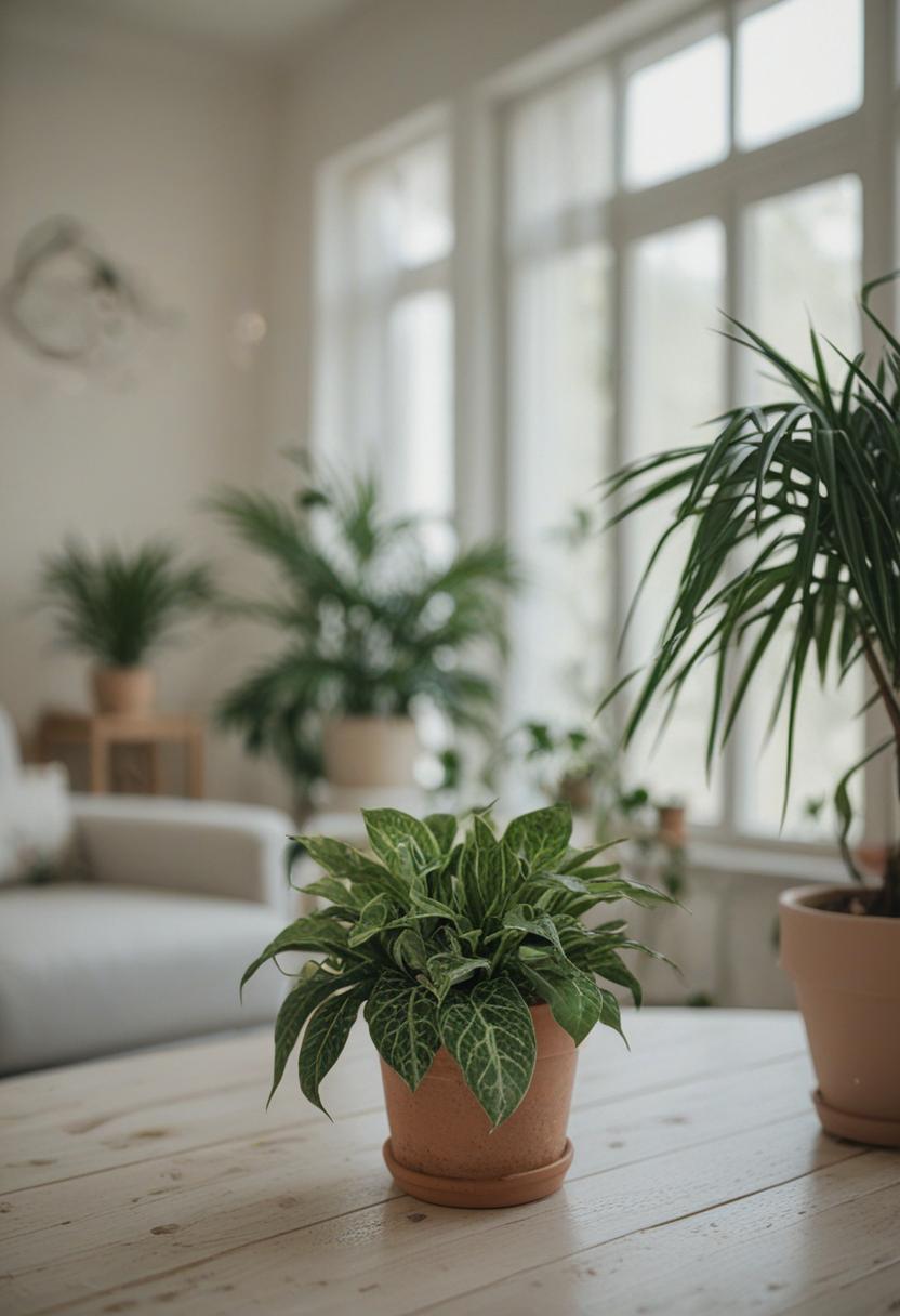9. A lush, vibrant plant arrangement with soft pastel tones and greenery, exuding a calm and loving atmosphere. Perfect for a cozy, nature-inspired space filled with warmth and botanical beauty.
