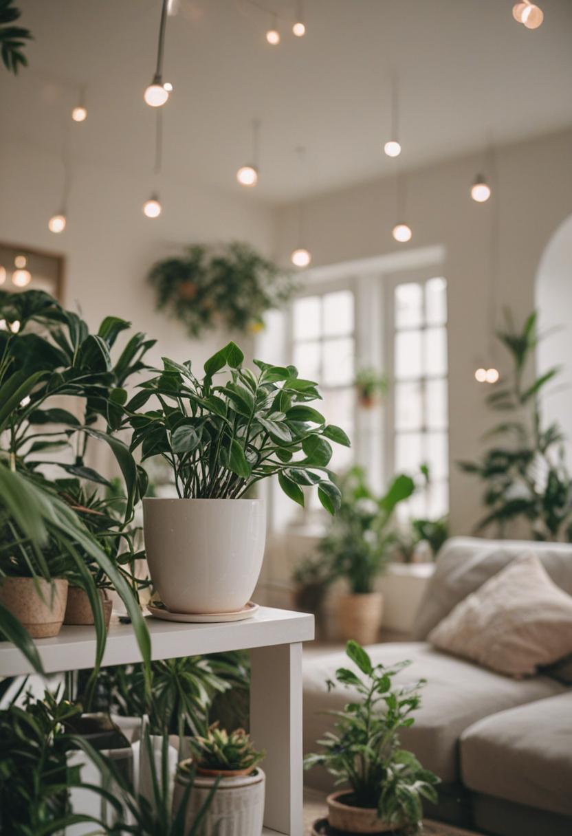 4. A cozy corner filled with lush green plants, soft lighting, and a warm, inviting atmosphere that embodies the love aesthetic—nature, comfort, and care beautifully combined.