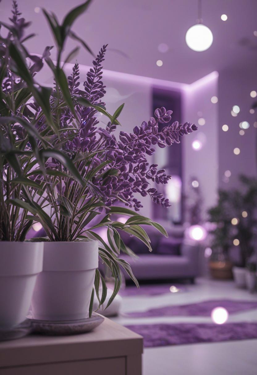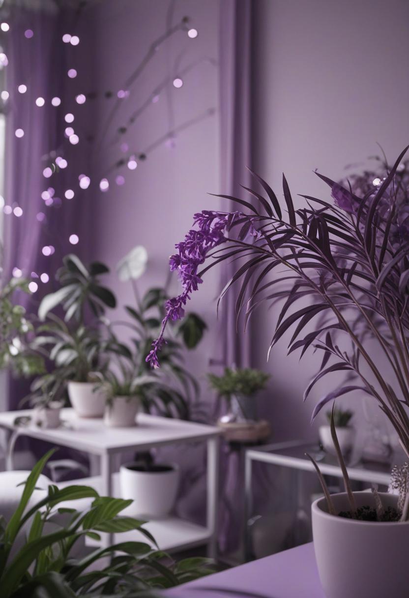 The purple aesthetic with plants brings a calming and mysterious vibe to any space.