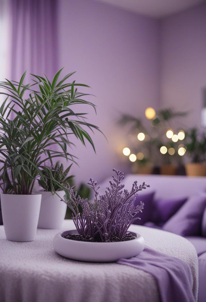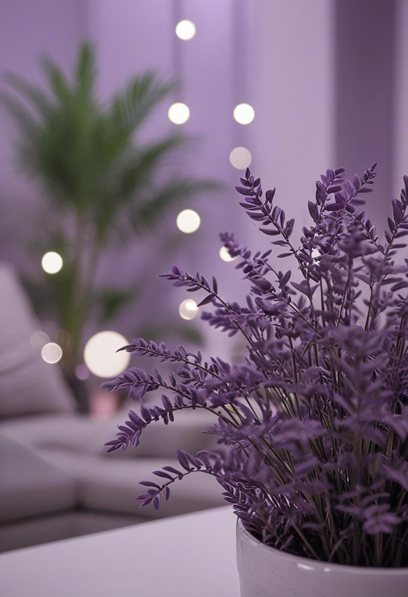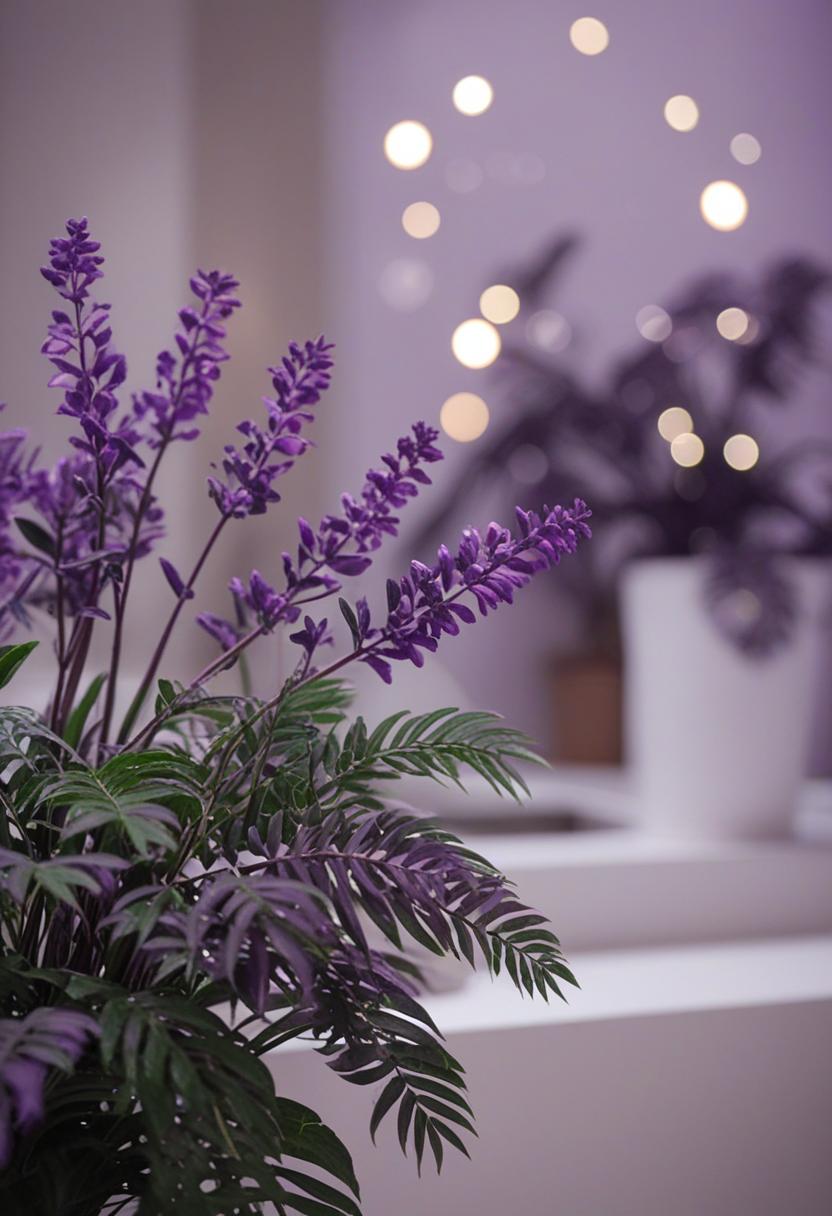 7. A lush, purple-hued plant arrangement evokes a mystical, serene atmosphere. Soft purples and deep violets blend with greenery, creating a calming, dreamy vibe perfect for a cozy indoor space or artistic inspiration.