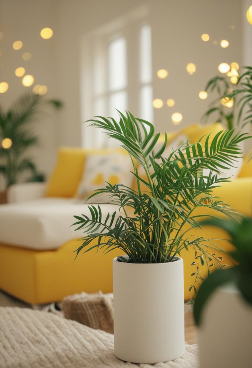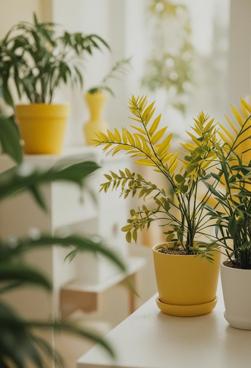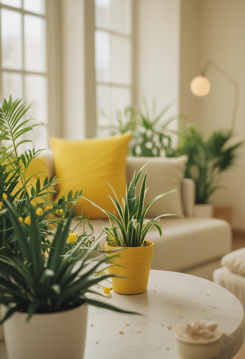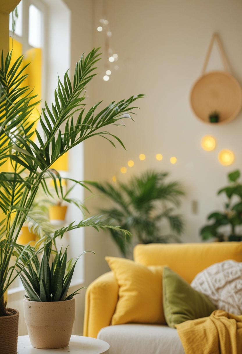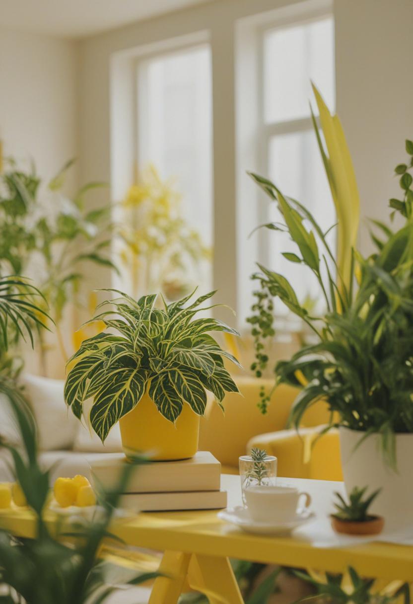 Combining yellow decor with greenery offers a harmonious and eye-catching design.