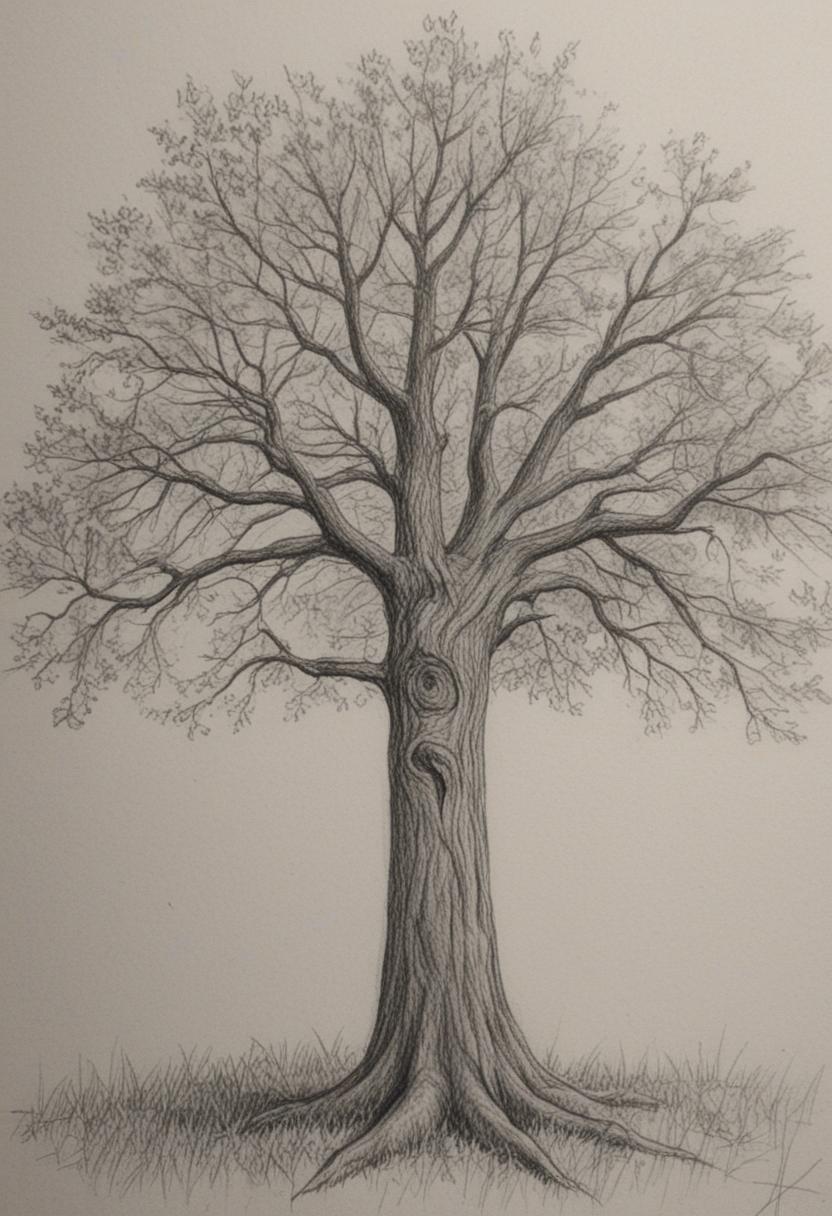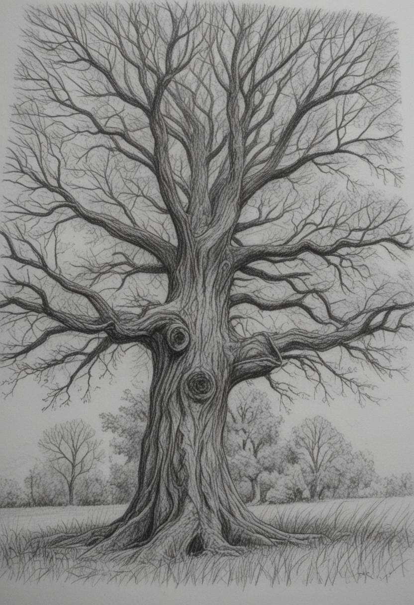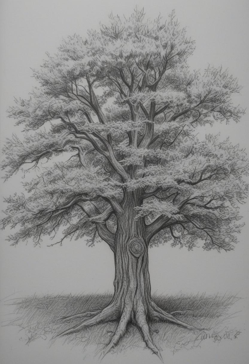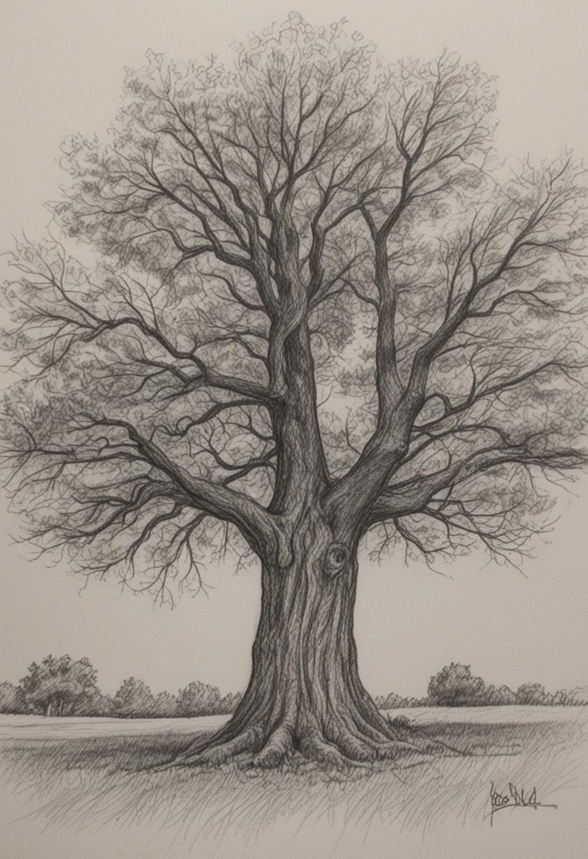 4. A delicate tree drawing artwork, featuring intricate lines and shading to create a realistic yet artistic representation of a tree, capturing the essence of nature through careful detail and creative expression.