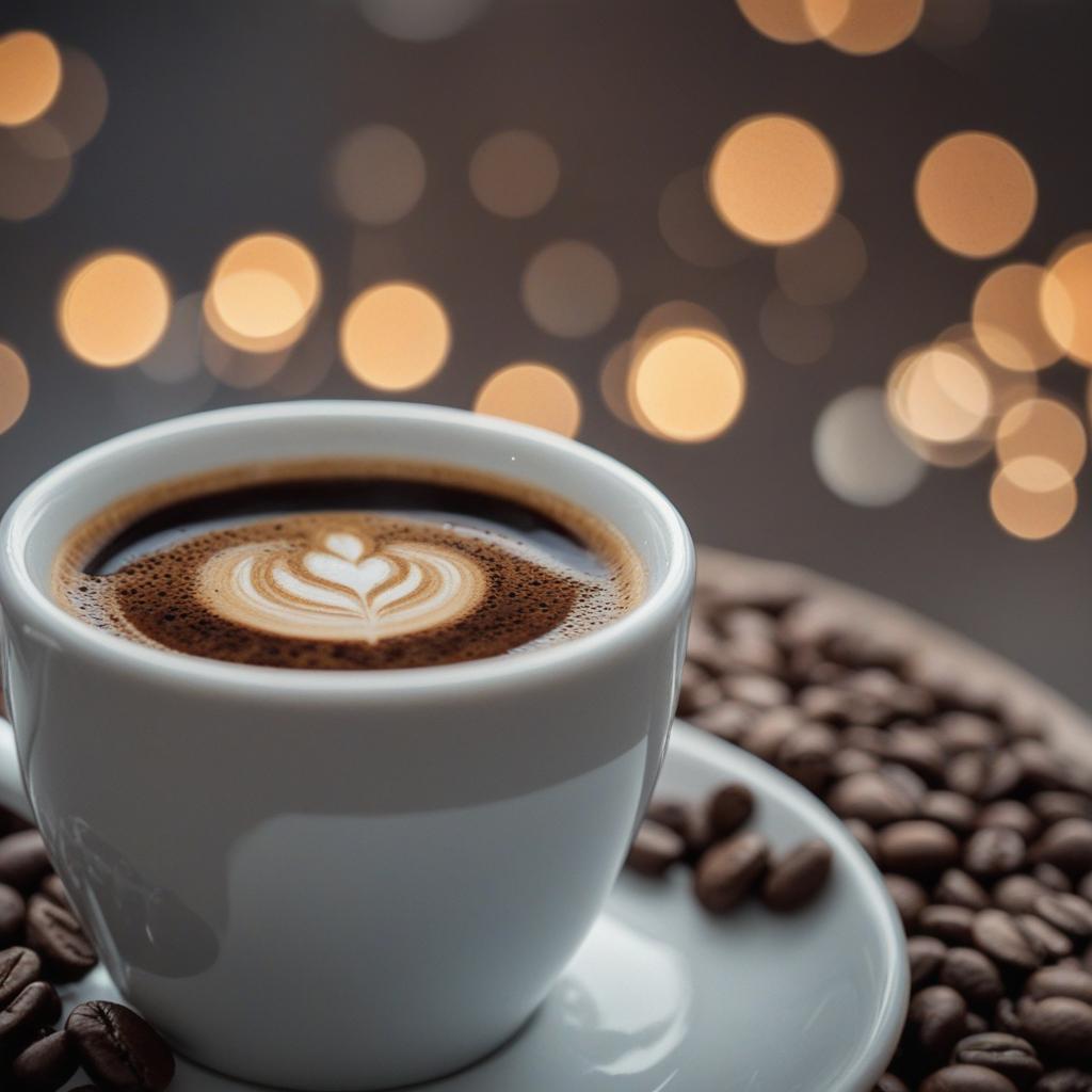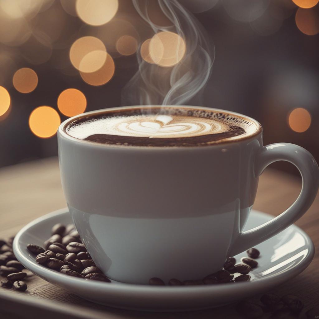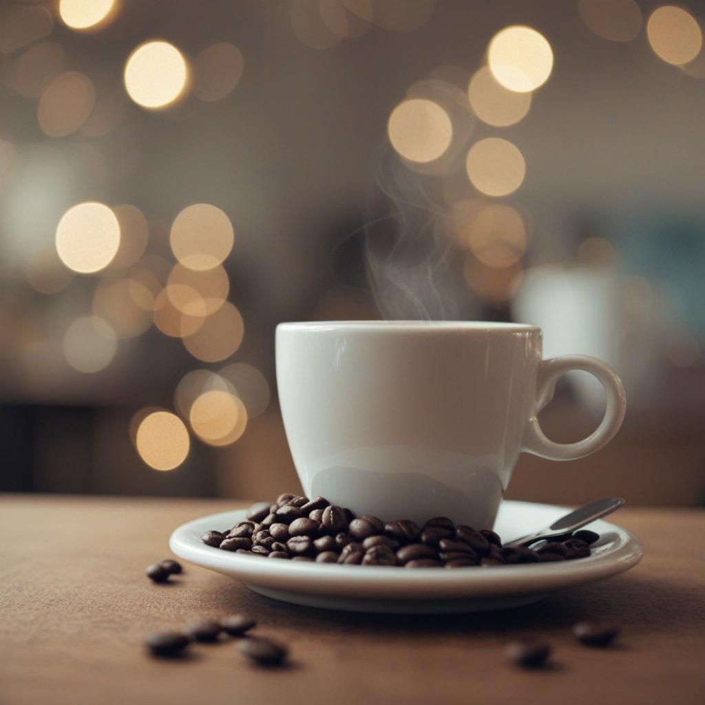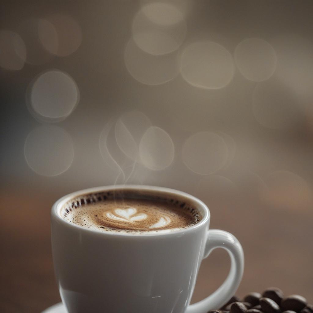 5. A cozy coffee aesthetic featuring rich coffee beans, a velvety crema, and a steaming brew. The image captures the warmth and aroma of a perfect cup, ideal for a relaxing morning or creative moment.
