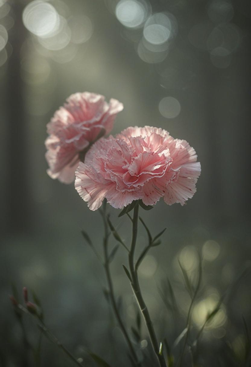 20. A delicate carnation silhouette bathed in soft, ethereal lighting, capturing a close-up view that exudes a dreamy, romantic carnation aesthetic.