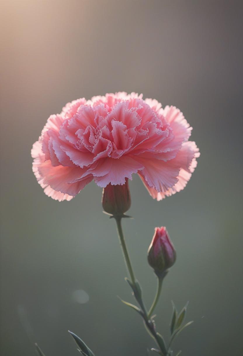 18. A peaceful side view of a carnation bathed in soft, dramatic backlighting, evoking a serene and romantic carnation aesthetic.