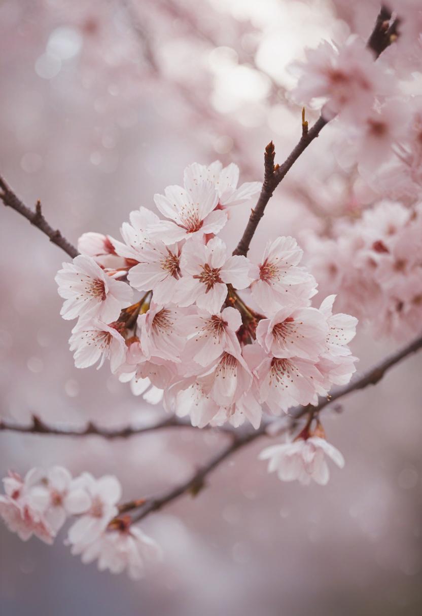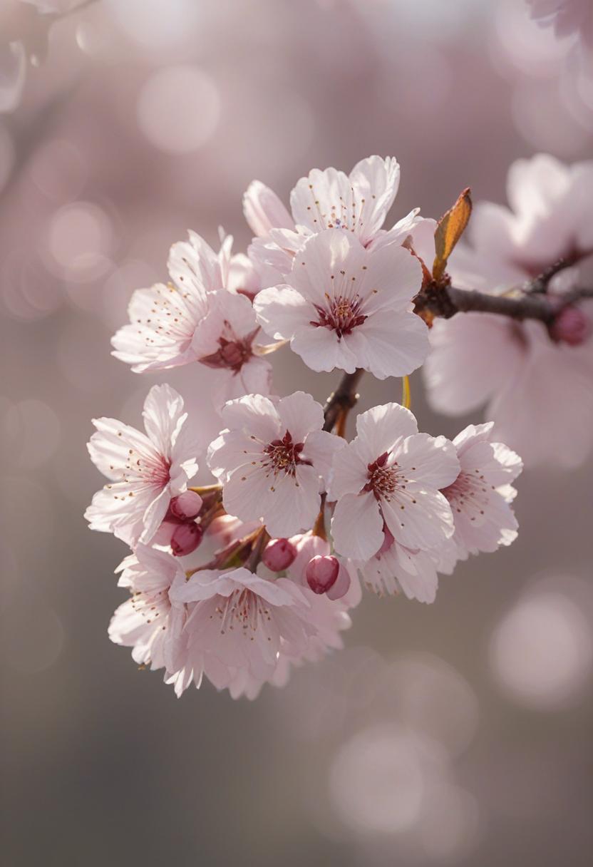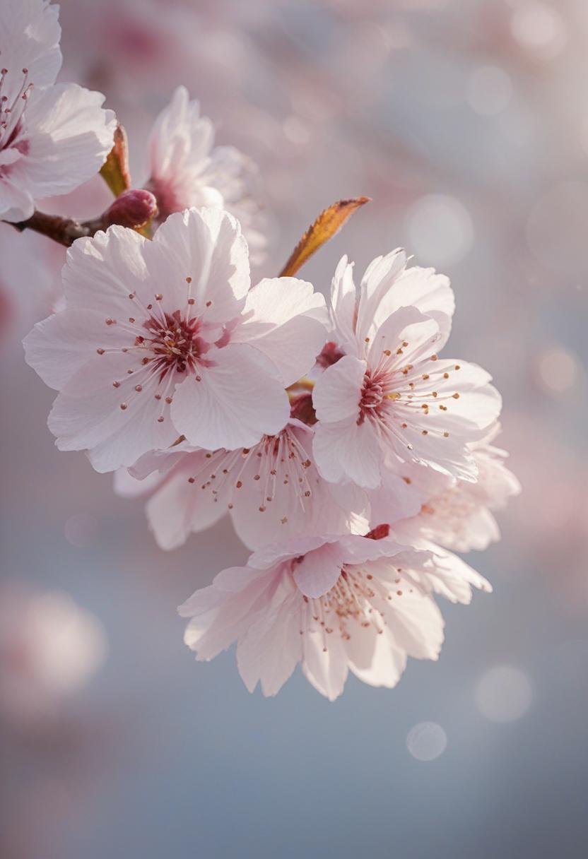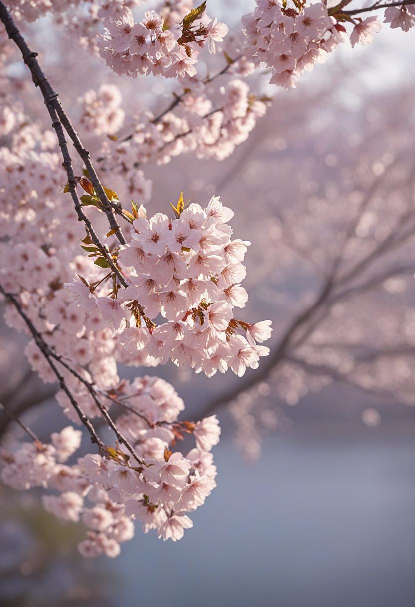 15. A soft, ethereal close-up of cherry blossoms under gentle morning light, capturing a serene and delicate beauty.