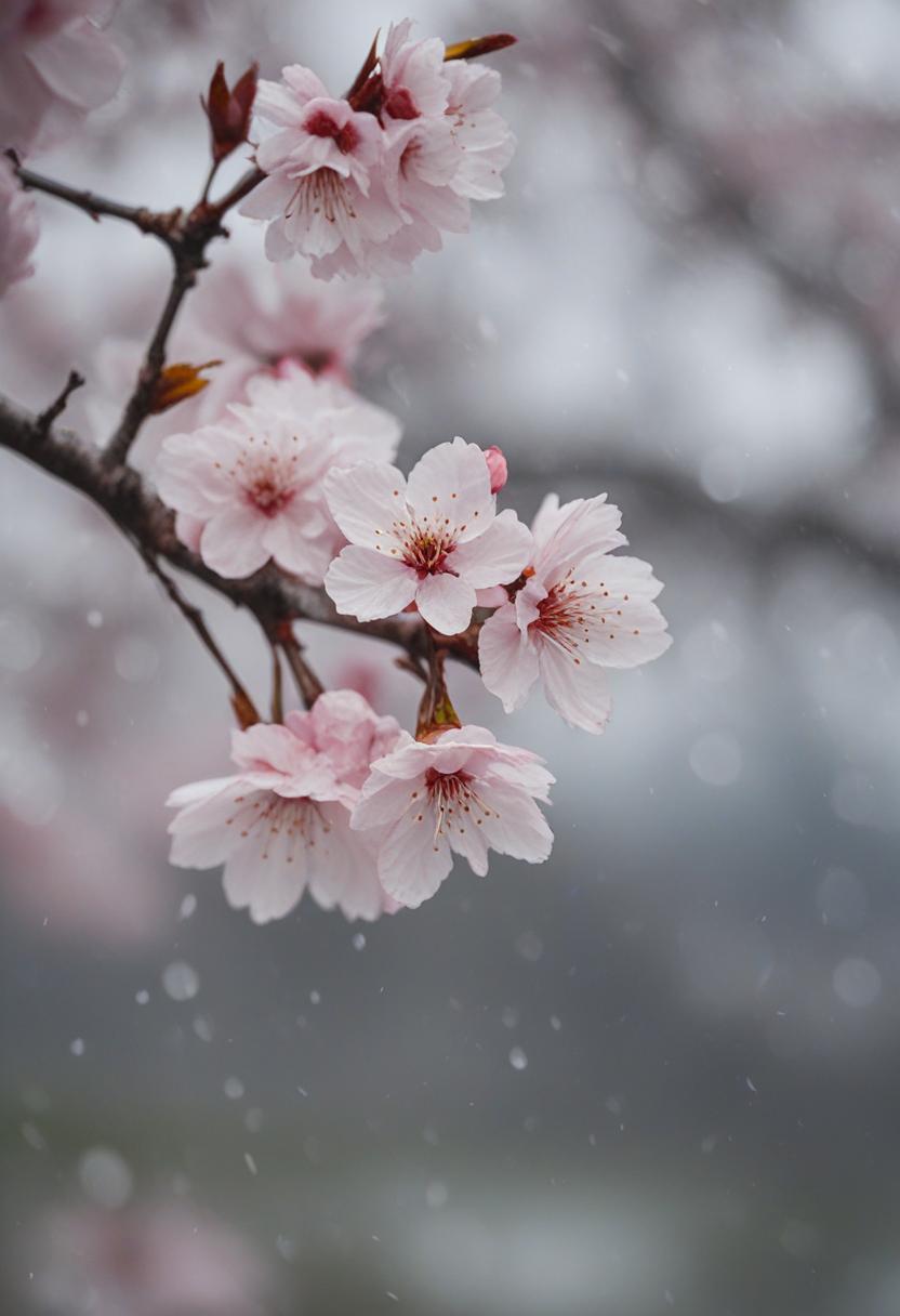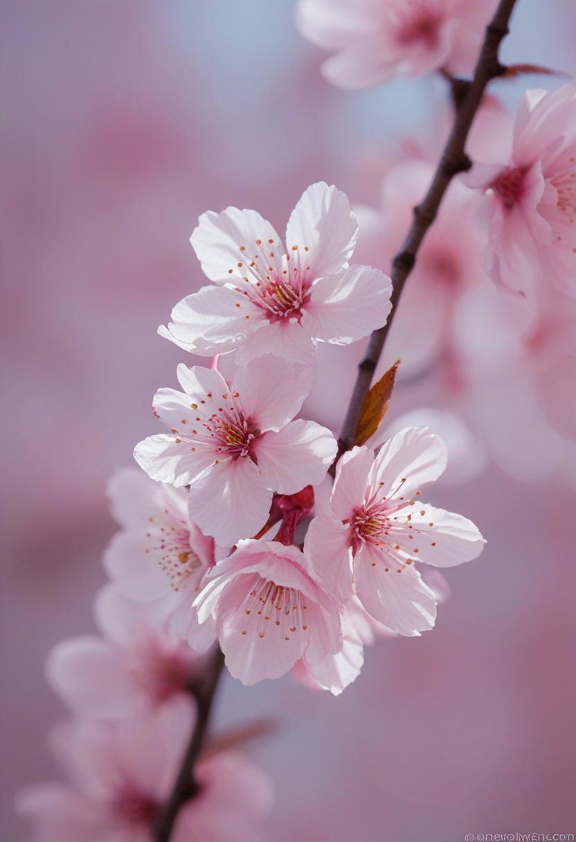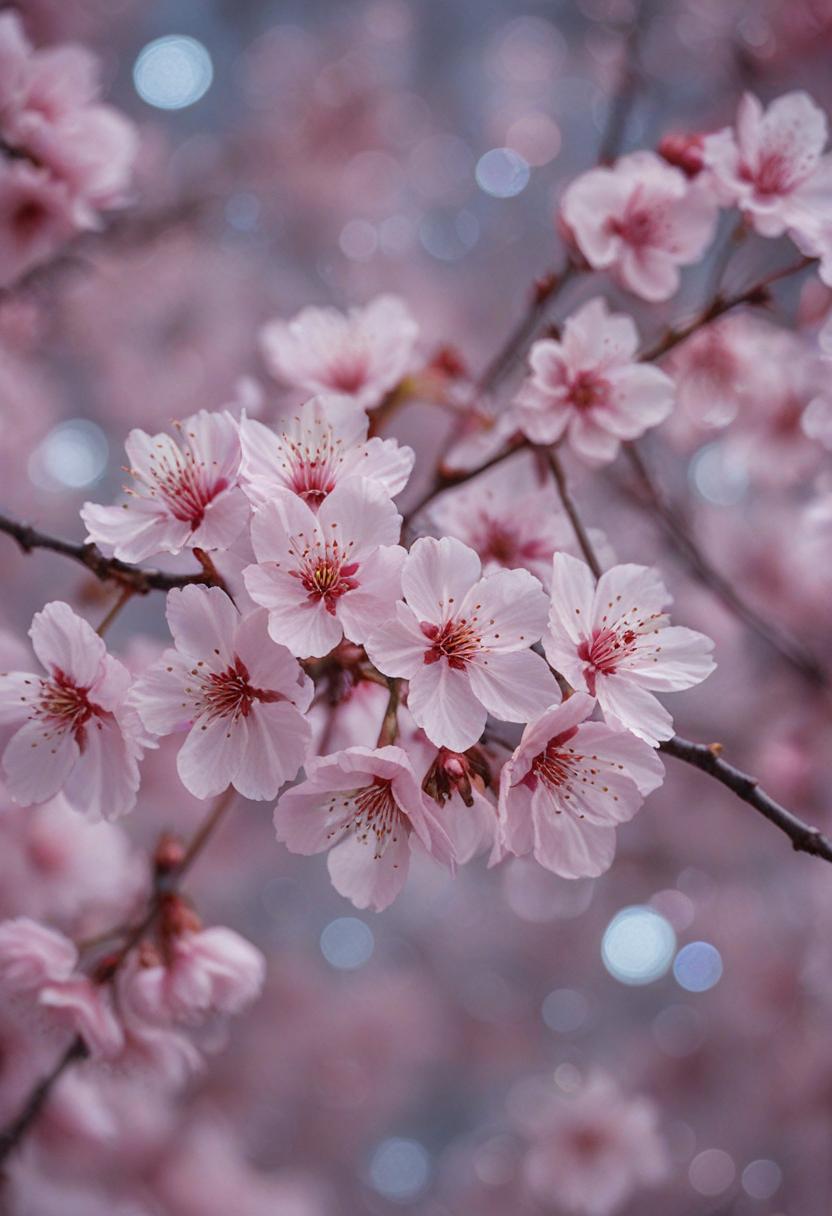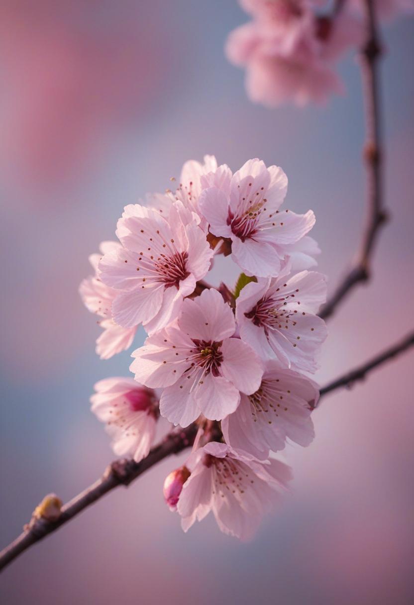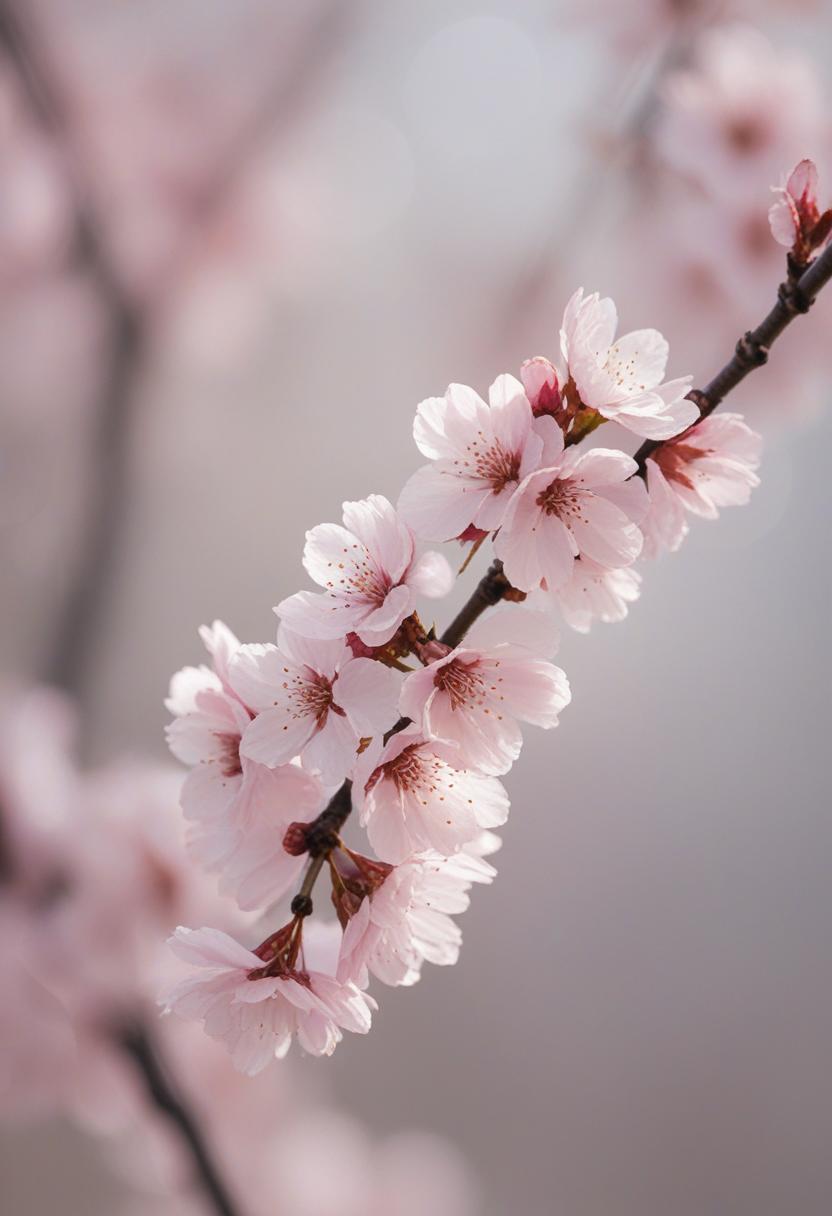 15. A soft, ethereal close-up of cherry blossoms under gentle morning light, capturing a serene and delicate beauty.