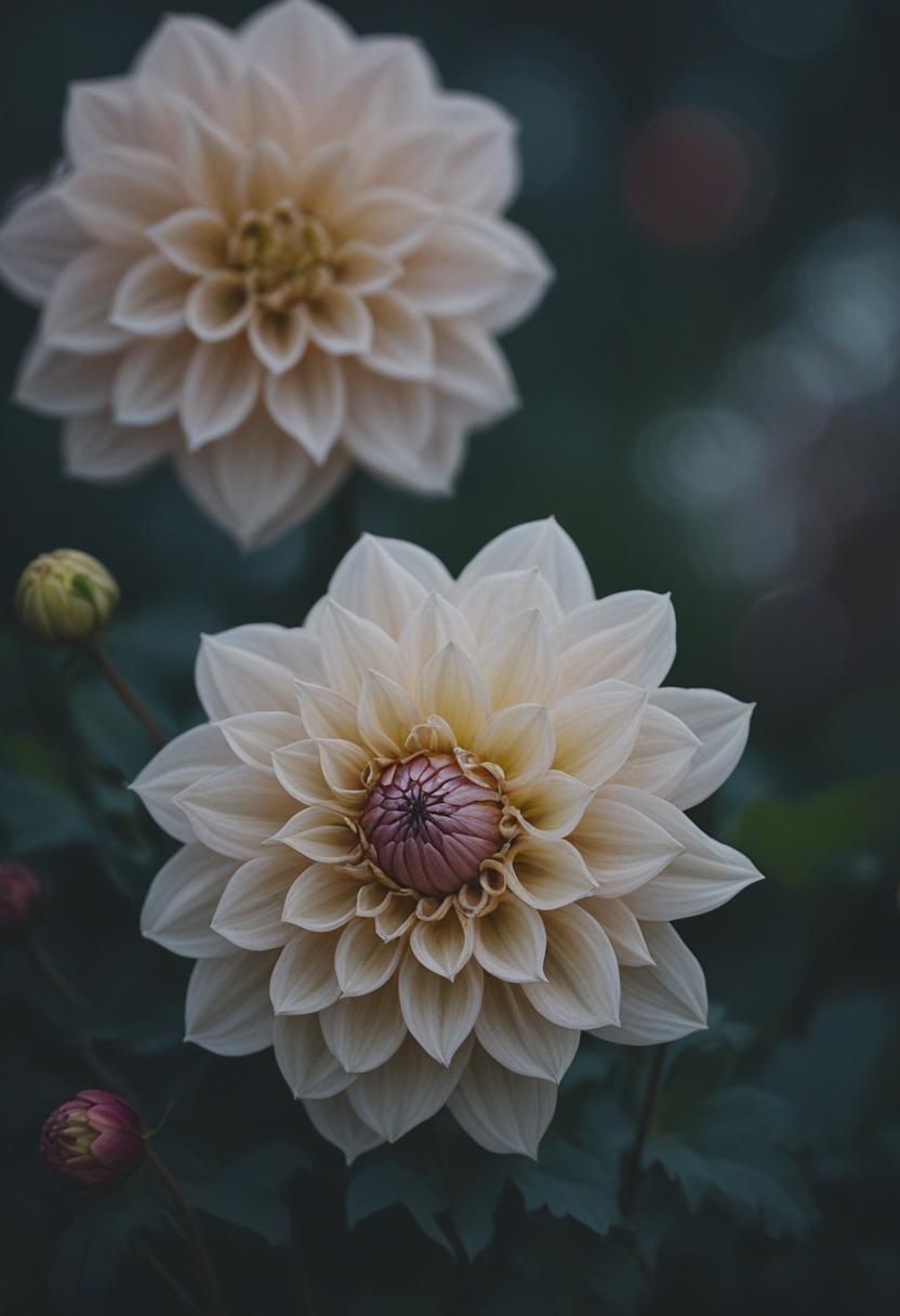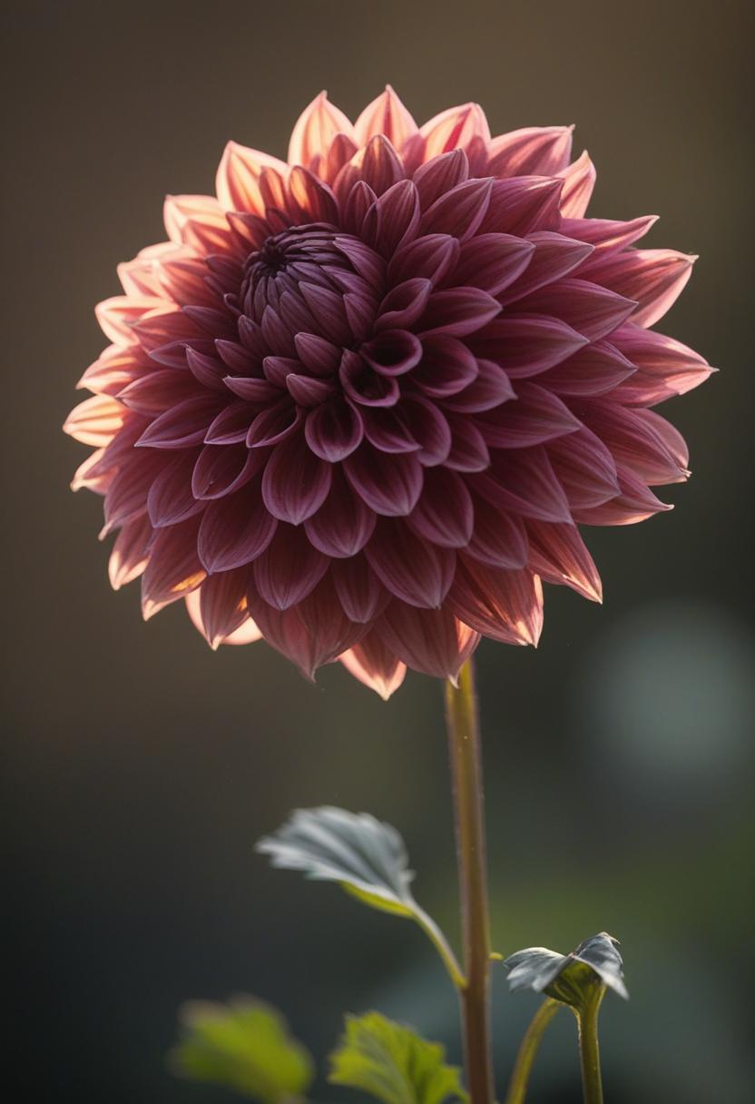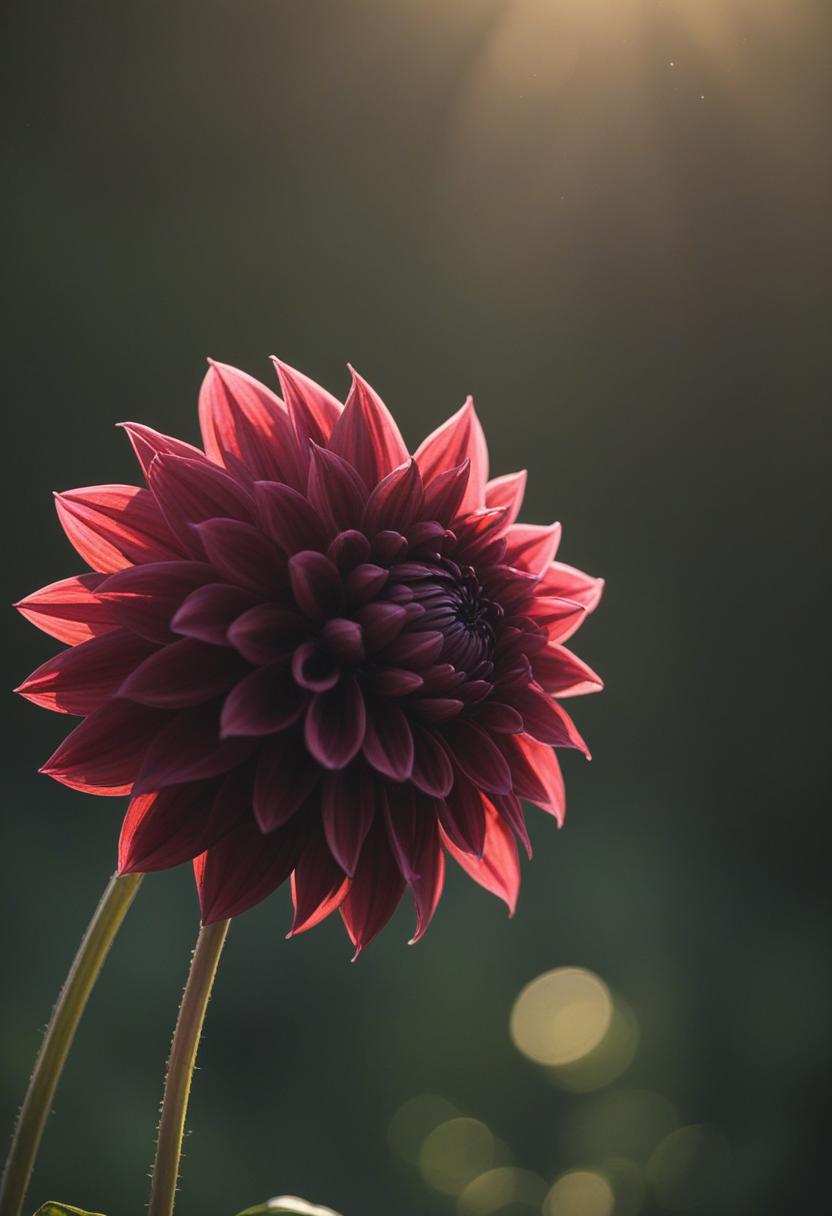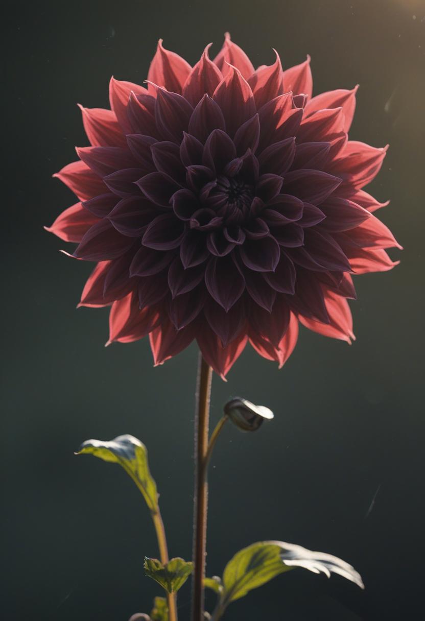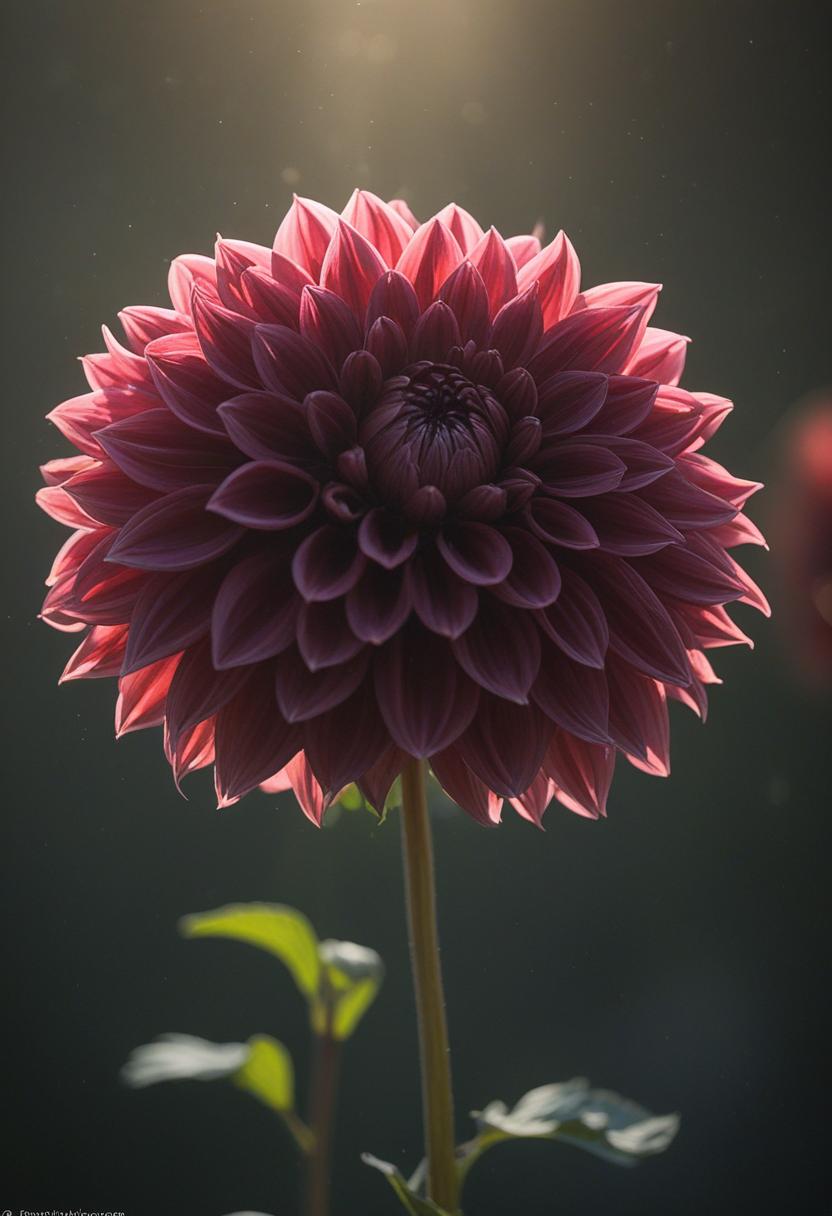 2. A dramatic dahlia in soft backlighting, captured in a romantic studio setting, exuding a dreamy, artistic vibe with rich shadows and elegant bloom.