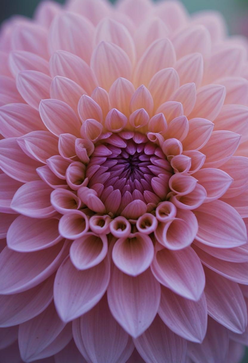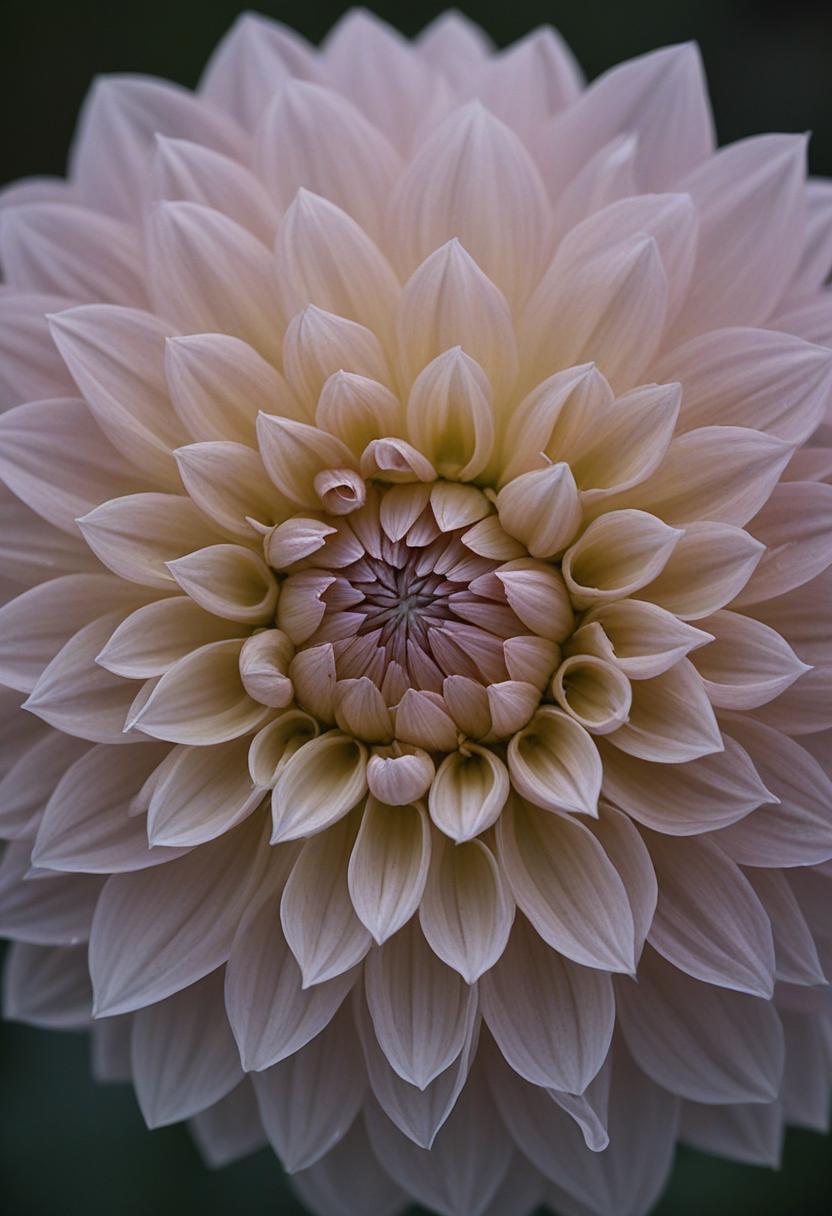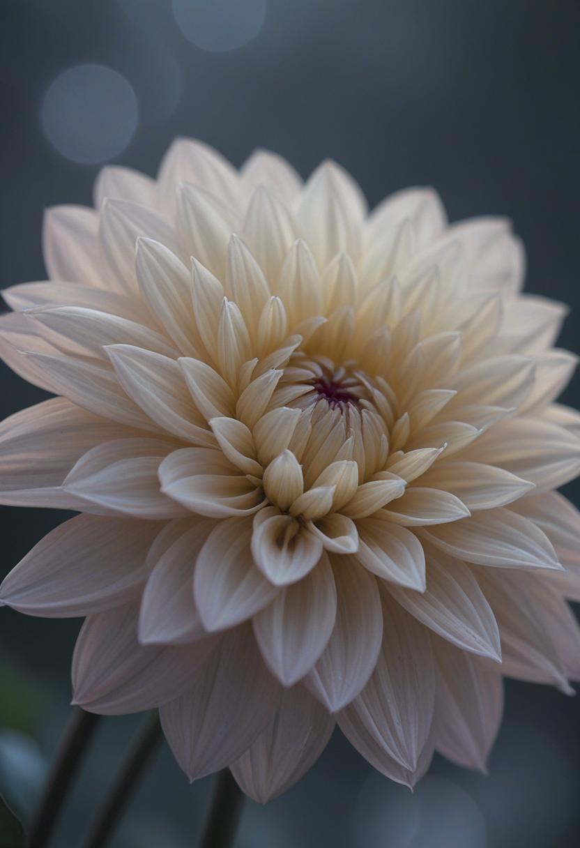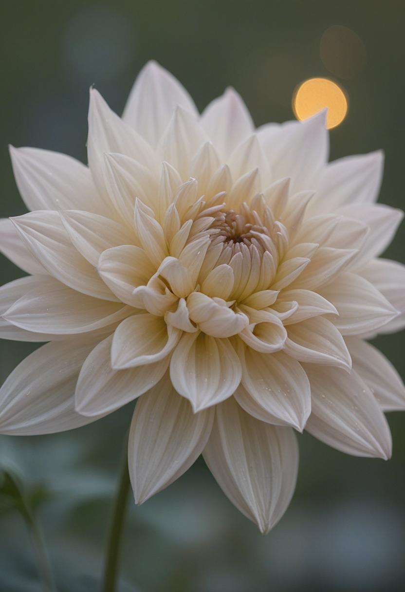 73. A surreal close-up of a dahlia in soft lighting, capturing its intricate silhouette with a dreamy, ethereal dahlia aesthetic.