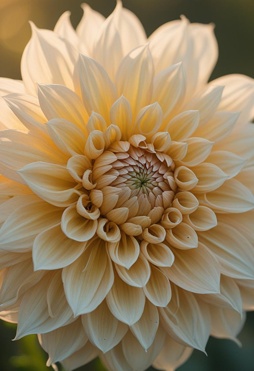 11. A minimalist close-up of a dahlia in golden hour light, capturing soft shadows and warm tones, exuding a serene and elegant dahlia aesthetic.