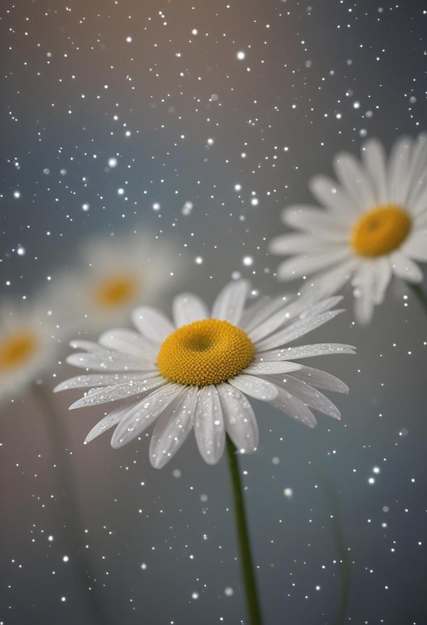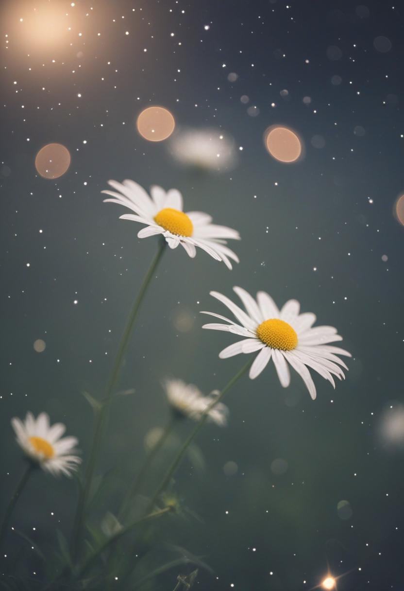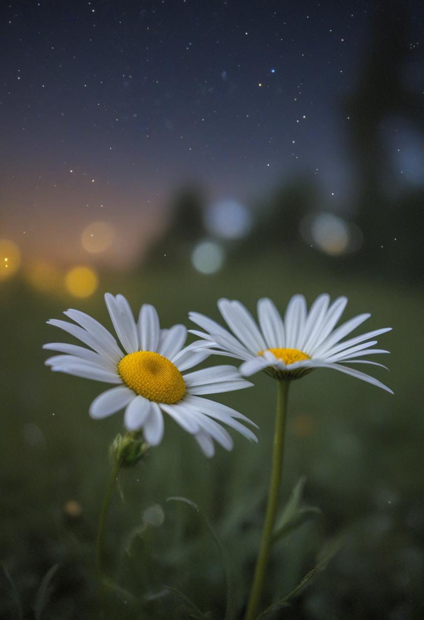 51. A surreal close-up of a daisy under starlight, blending dreamy aesthetics with soft, glowing light, creating a magical, ethereal atmosphere.