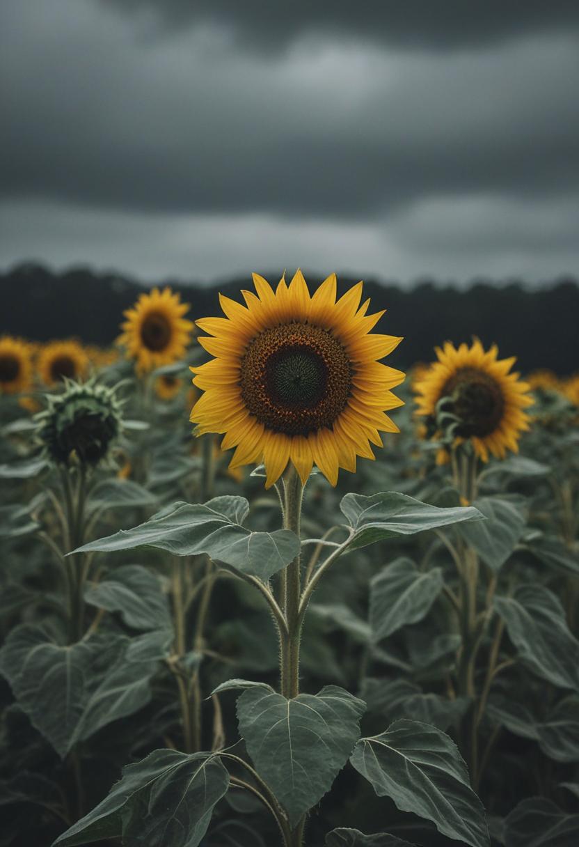 71. A dramatic sunflower aesthetic with a cloudy, overcast sky and bold text view.